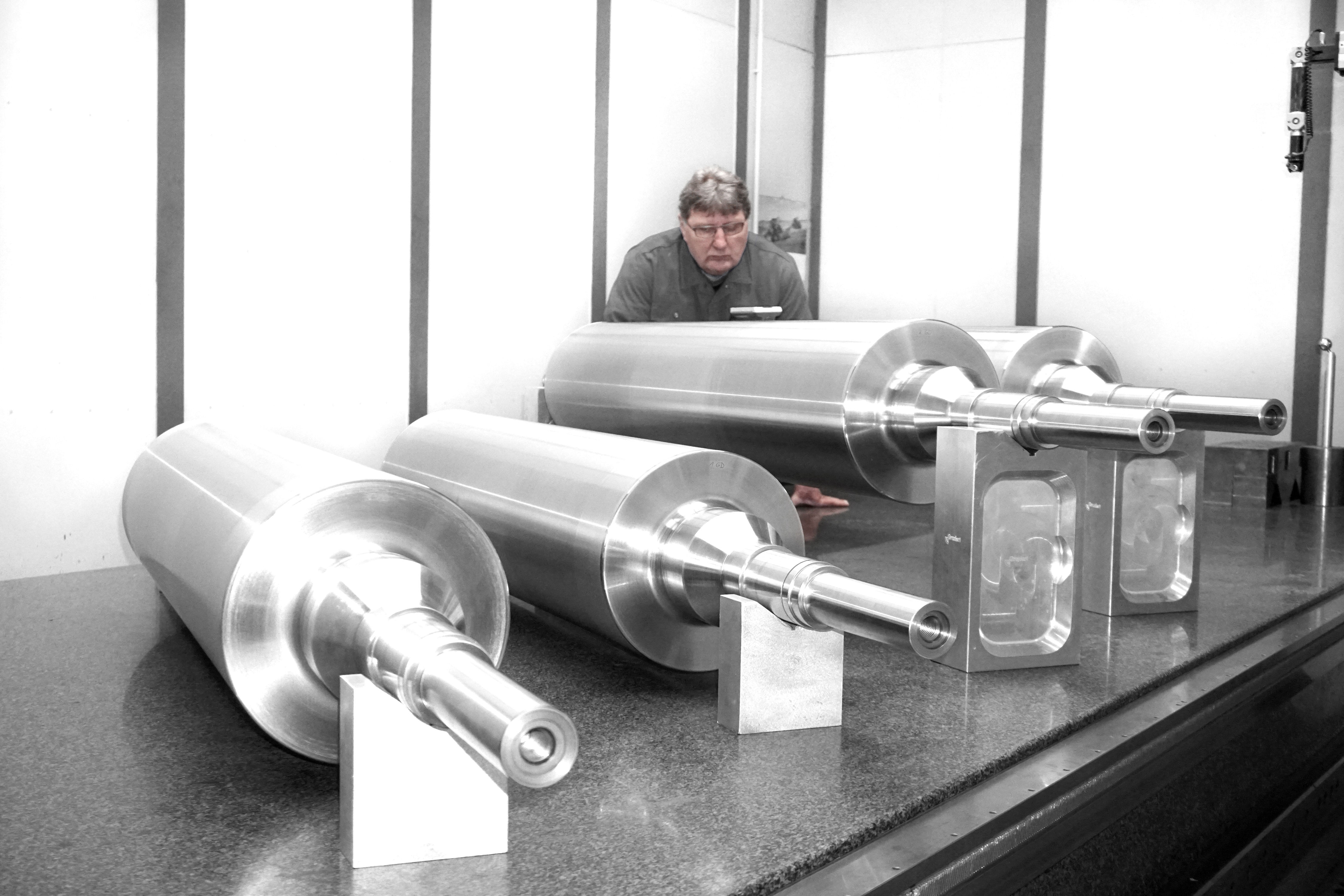 Druckwalzen, Verreibewalzen, Presseure, Farbwalzen, Chromwalzen, Gegendruckwalzen, Feuchtwalzen, Umlenkwalzen, Leitwalzen, Antriebswalzen, Lineaturwalzen, Vorschubwalzen, Abquetschwalzen, Einzugsswalzen, Breitstreckwalzen, Förderwalzen Kaschierwalzen, Tauchwalzen, Übertragungswalzen, Rasterwalzen, Gummiwalzen etc.